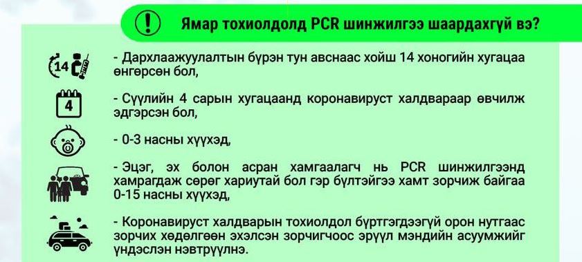 - 0-3 насны хүүхдээс PCR шинжилгээний хариу шаардахгүй.