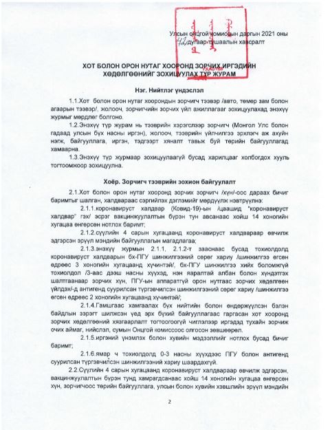 - Хот хооронд зорчих иргэдийг вакцины хоёр тунд хамрагдаад 14 хоносон баримтыг үндэслэн явуулна.