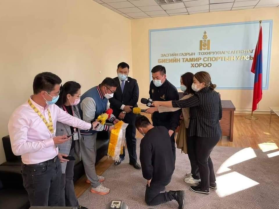 Э.Цэндбаатар Боксын холбооноос уучлал хүсэж хадаг барин өвдөг сөгдлөө