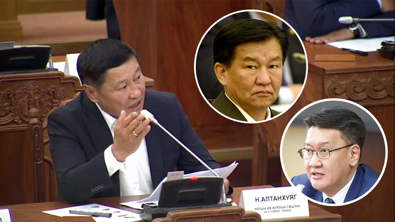 УИХ-ын гишүүн Н.Алтанхуяг, Ц.Даваасүрэн нар энэ асуултыг Сангийн сайд Б.Жавхланд хаяглаж ширүүхэн “зодоон” эхлүүлчихээд байгаа. УИХ-ын гишүүн Ц.Даваасүрэн “Сангийн сайд Б.Жавхлан хаана банк, зээлийн сан байна, түүнд гар дүрж байна. Өөрийн дүү Б.Амгаланг Монголбанкны дэргэдэх бичил санхүүгийн хөгжлийн зээлийн санд ажилд оруулсан. Нийт 2.8 тэрбум төгрөгийг “Жэт Финанс” ББСБ-даа авсан. Жилийн 6 хувийн хүүтэйгээр аваад цааш нь хэдээр өгдөг юм. Ер нь мөнгө угаасан гэсэн үг. Мөн ЖДҮС-д нөлөөлж зээл олгуулсан байж магадгүй асуудал яригддаг. 2014 онд Капитал банкнаас иргэн н.Чинзоригийн нэр дээр 1.2 тэрбум төгрөгийн зээлийг эхнэр А.Соёлмаагийн нэр дээр барьцааны гэрээ байгуулан авахуулсан ч төлөөгүй. Энэ зээл Төрийн банкинд шилжсэн гэдэг мэдээлэл байна. Төрийн банк Сангийн сайдын харьяанд байдаг. Сангийн сайдын багцад арилжааны банкууд аж ахуйн нэгжүүдэд зээл олговол хүүгийн зөрүүнд зориулж 60 тэрбум төгрөг суулгасан байгаа. Үүнийг юу болгож байгааг бид мэдэхгүй” хэмээн жинтэйхэн бухимдсан.