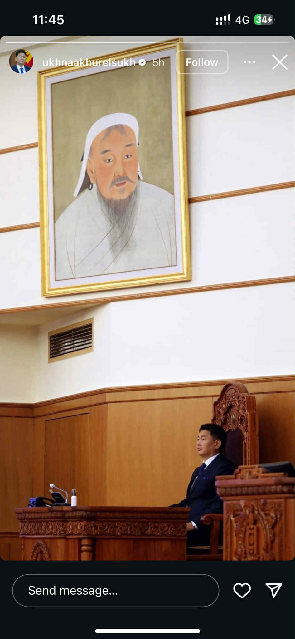 Монгол улсын Ерөнхийлөгч Ухнаагийн Хүрэлсүх Инстаграм хаягтаа түүх нийтэлжээ.
