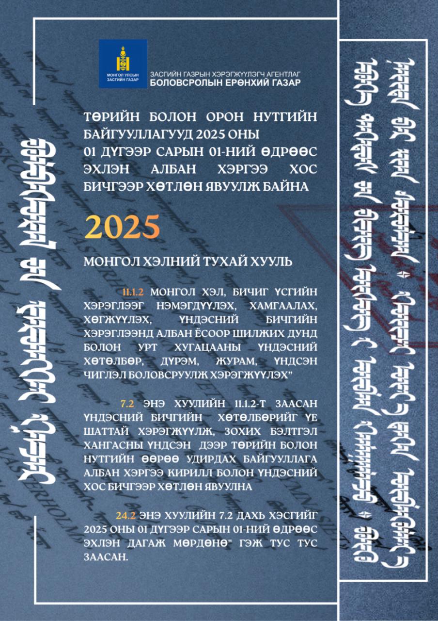 Төрийн болон орон нутгийн байгууллагууд 2025.01.01-нээс албан хэргээ хос бичгээр хөтлөн явуулж байна