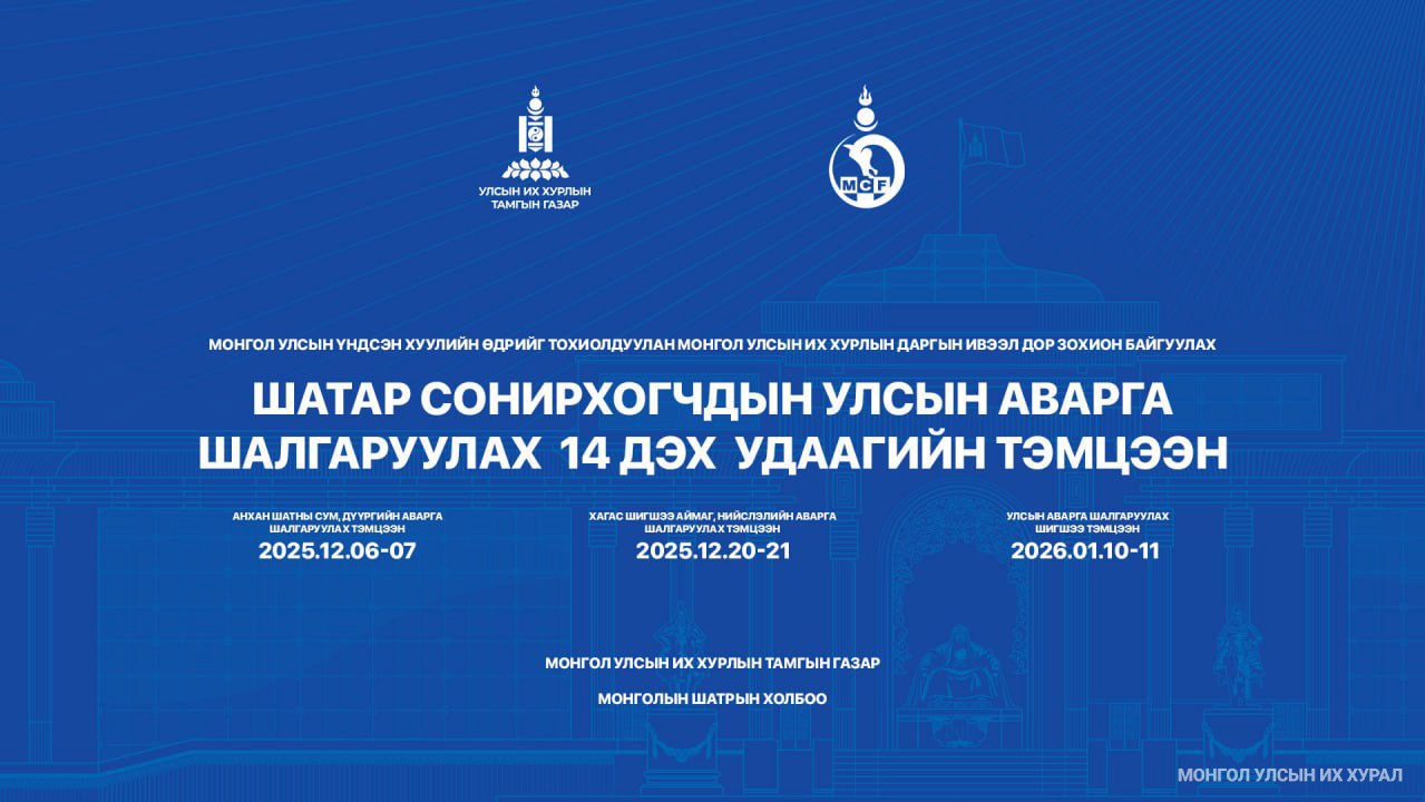 Улсын Их Хурлын Тамгын газрын Менежментийн газрын дарга Т.Нармандах, “Монгол Улсын Үндсэн хуулийн өдөр”-ийг тохиолдуулан Улсын Их Хурлын даргын ивээл дор Шатар сонирхогчдын Улсын аварга шалгаруулах 14 дэх удаагийн тэмцээнийг уламжлал ёсоор гурван үе шаттай явуулах тул идэвхтэй оролцож, оюун ухаанаа уралдуулахыг нийт шатар сонирхогчдодоо уриалж байна. Энэ удаагийн тэмцээнд Монголын шатрын холбооны рейтингийн жагсаалтаар чансаа нь 2000-аас хэтрээгүй (эмэгтэй шатарчны чансаа 1800 хүртэл), шатрын спортын улсын цолгүй, 25 нас хүрсэн шатар сонирхогч оролцох боломжтой. Эхний шатны тэмцээнийг Аймаг, нийслэл, сум, дүүргийн иргэдийн Төлөөлөгчдийн Хурлын ажлын алба хамтран 2025 оны 12 дугаар сарын 06, 07-ны өдөр орон даяар нэгэн зэрэг зохион байгуулж, сум, дүүргийн аваргуудыг шалгаруулна. Уг тэмцээнээс сум бүр эрэгтэй 2, эмэгтэй 1, дүүрэг бүр эрэгтэй 6, эмэгтэй 3 шатарчин шалгарч, хагас шигшээ шатны тэмцээнд оролцох болно гэсэн юм.
