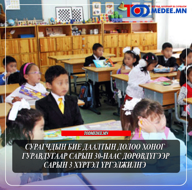 Нийслэлийн ерөнхий боловсролын сургуулиудын 2025-2026 оны хичээлийн жилийн хоёрдугаар улирал өнөөдөр эхэлж байна. 2025-2026 оны хичээлийн жил гурван улиралтай. Энэ жил өвлийн амралтыг нэг долоо хоногоор сунгаж, бага ангийн сурагчид энэ оны арванхоёрдугаар сарын 15-наас эхлэн амарсан юм. Тэгвэл хоёрдугаар улирлын бие даалтын долоо хоног гуравдугаар сарын 30-наас дөрөвдүгээр сарын 3 хүртэл байна. Үргэлжлүүлээд улирлын амралт нь долоо хоног үргэлжлэх аж.